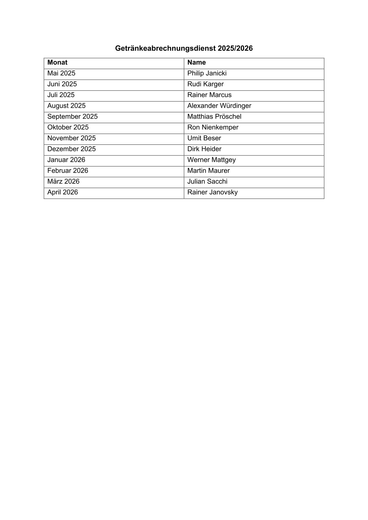 Dem Vereinsausschuss müssen alle Beiräte angehören: - der Kassierer, - der Jugendwart. - der Turnierleiter.