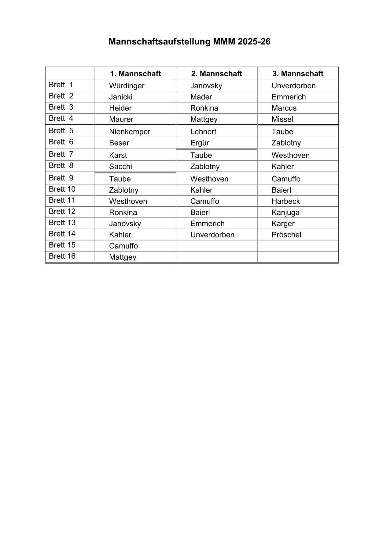 Mannschaften 2025/2026